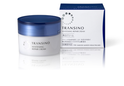 ‘트란시노 화이트닝 리페어크림’의 주성분 트라넥삼산(Tranexamic Acid)은 피부의 멜라닌 생성을 근본적으로 억제시키고, 멜라닌 색소의 체외 배출량을 늘림으로써 피부에 침착된 멜라닌 색소의 양을 줄어들게 한다.