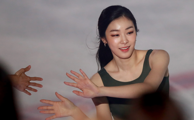 김연아가 20일 오후 목동아이스링크에서 열린 '올 댓 스케이트 2018'에서 공연을 마친 뒤 관중들을 향해 인사하고 있다.