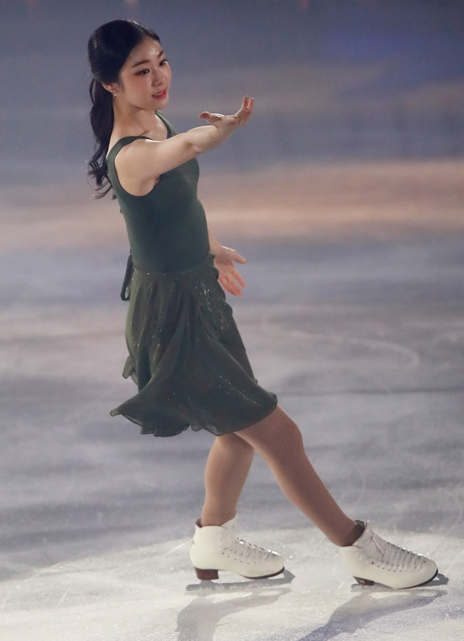 김연아가 20일 오후 목동아이스링크에서 열린 '올 댓 스케이트 2018'에서 공연을 마친 뒤 관중들을 향해 인사하고 있다.