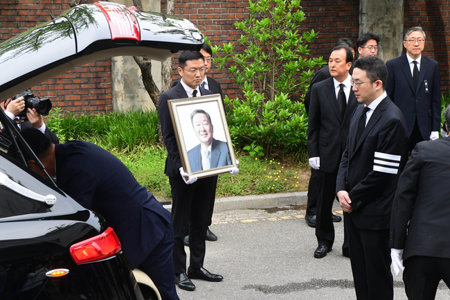 22일 오전 종로구 서울대병원 장례식장에서 열린 故 구본무 LG그룹 회장의 발인식에서 구광모 LG전자 상무가 운구차량을 바라보고 있다.