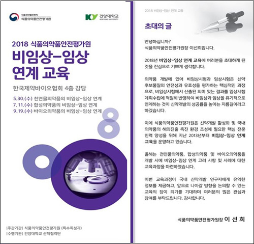 이번 교육은 신약 개발단계에서 실시되는 비임상시험과 임상시험의 연계성에 대한 이해 향상을 통해 연구자들의 역량을 강화하는 동시에 국내 제약바이오산업 관련 전문 인력을 양성하기 위해 마련됐으며, 한국제약바이오협회에서 실시된다.