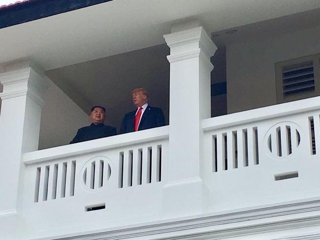 세라 허커피 샌더스 미국 백악관 대변인이 12일 트위터에 김정은 북한 국무위원장과 도널드 트럼프 미국 대통령의 만남을 담은 사진을 공개했다.