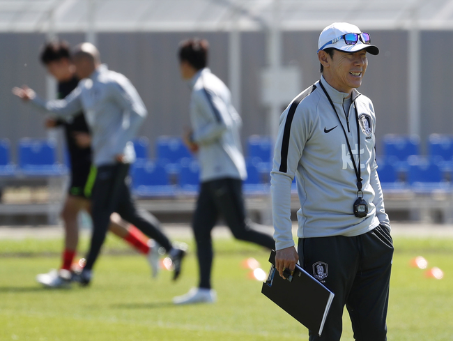 월드컵대표팀 감독 신태용이 15일(현지시간) 러시아 상트페테르부르크 로모노소프 스파르타크 훈련장에서 훈련을 지시하고 있다.