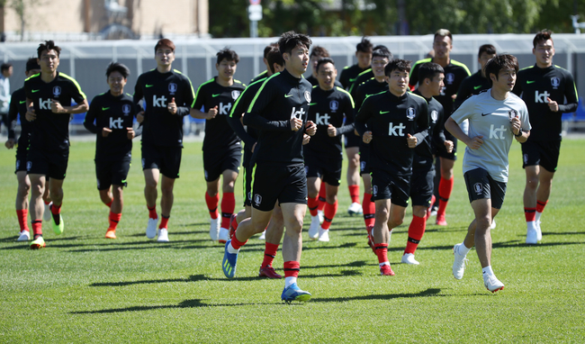 월드컵대표팀이 15일(현지시간) 러시아 상트페테르부르크 로모노소프 스파르타크 훈련장에서 공식훈련을 하고 있다.