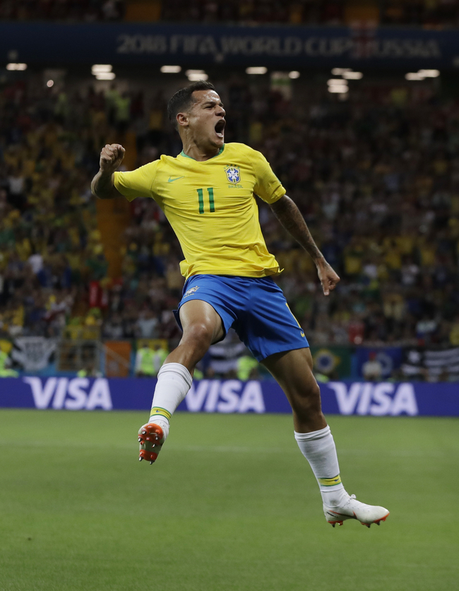 브라질의 필리페 쿠티뉴가 전반 20분 선제골을 넣은 후 기뻐하고 있다.