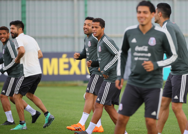 2018러시아월드컵 한국과 F조 예선 2차전을 치를 멕시코 선수들이 19일(현지시간) 모스크바 노보고르스크 다이나모 훈련장에서 가볍게 몸을 풀고있다.