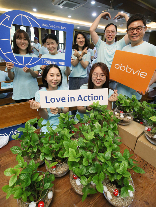 애브비는 전 세계 직원들이 참여하는 글로벌 사회 공헌 프로그램인 ‘가능성 주간(Week of Possibilities)’ 일환으로 세계 각국 각지에서 소외 이웃을 대상으로 창립 이래 꾸준히 봉사활동을 펼쳐 왔다.