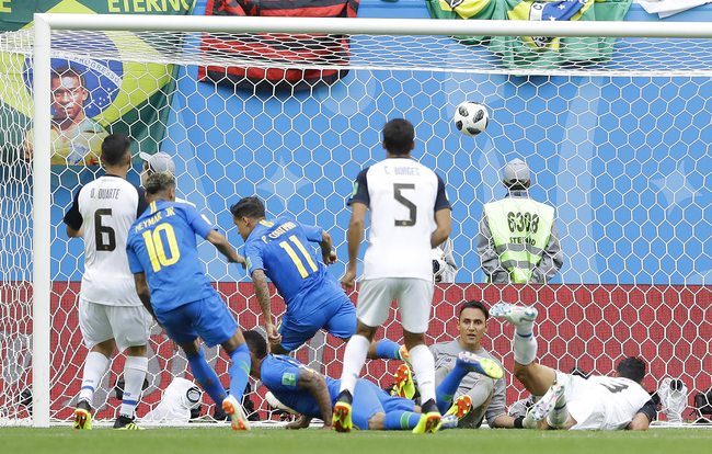 브라질이 22일(한국시간) 러시아 상트페테르부르크 스타디움에서 열린 2018 국제축구연맹(FIFA) 러시아월드컵 E조 2차전 코스타리카와의 경기에서 필리페 쿠티뉴와 네이마르의 골에 힘입어 2-0으로 승리했다.