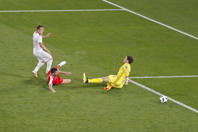 스위스가 23일(한국시간) 러시아 칼리닌그라드 스타디움에서 열린 2018 국제축구연맹(FIFA) 러시아월드컵 E조 2차전 세르비아와의 경기에서 종료 직전 터진 세르단 샤키리의 골로 2-1 역전승했다.