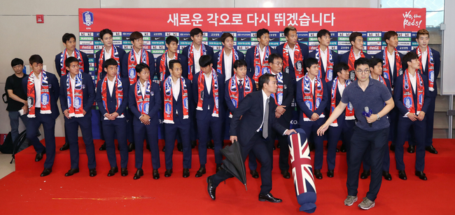 2018 러시아 월드컵 대표팀 선수들이 29일 오후 인천공항을 통해 귀국했다. 인터뷰 도중 일부 팬들의 달걀 세례에 선수들이 당황해하고 있다.