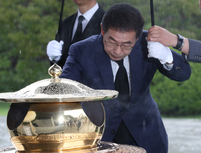 박원순 서울시장이 2일 오전 서울 동작구 국립서울현충원에서 분향하고 있다.