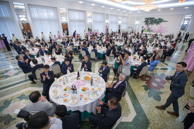 3일 오후 평양 옥류관에서 열린 남북통일농구경기 환영만찬이 열렸다.