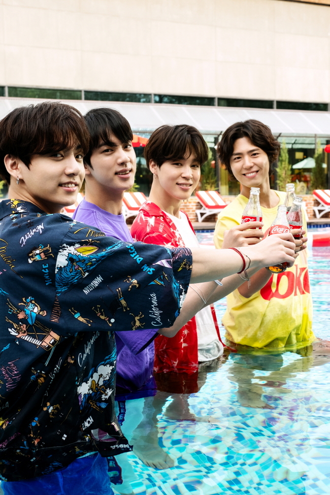 그룹 방탄소년단과 배우 박보검의 코카콜라 광고 촬영 현장 사진이 6일 공개됐다.
