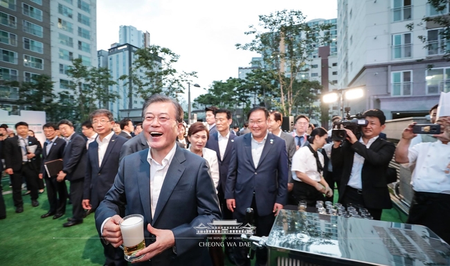 문재인 대통령이 5일 서울 구로구 오류동 행복주택 단지 내 야외행사장에서 ‘함께 나누는 신혼부부·청년 주거 이야기 – Beautiful life’를 주제로 한 신혼부부 및 청년 주거대책을 발표했다.