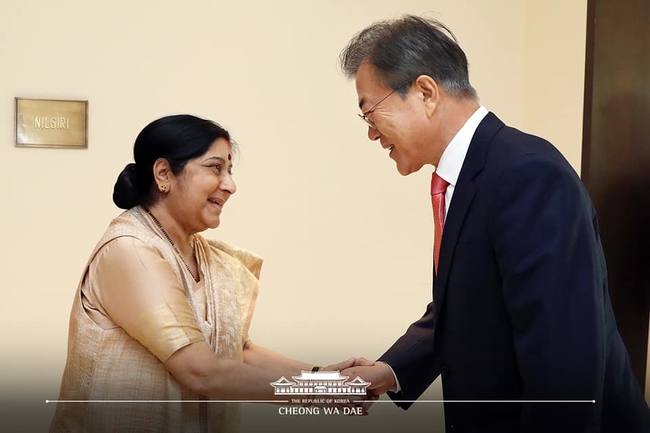 문 대통령, 수시마 스와라지 인도 외교장관 접견