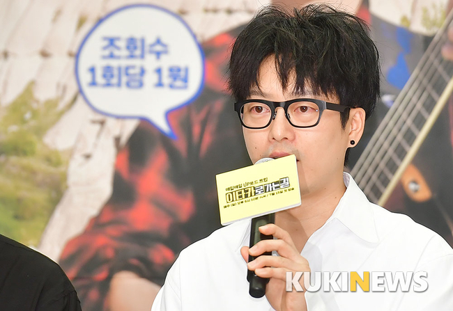 가수 하현우가 11일 오전 서울 상암동 스탠포드호텔에서 열린 tvN 예능 프로그램 '이타카로 가는 길' 제작발표회에 참석해 인사하고 있다.