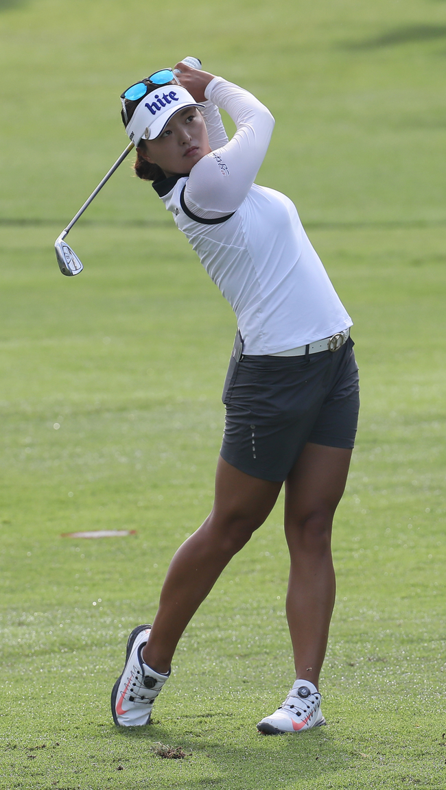 고진영이 10일 오전 제주시 오라컨트리클럽에서 열린 KLPGA 제주 삼다수 마스터스 1라운드에서 아이언샷을 하고 있다.