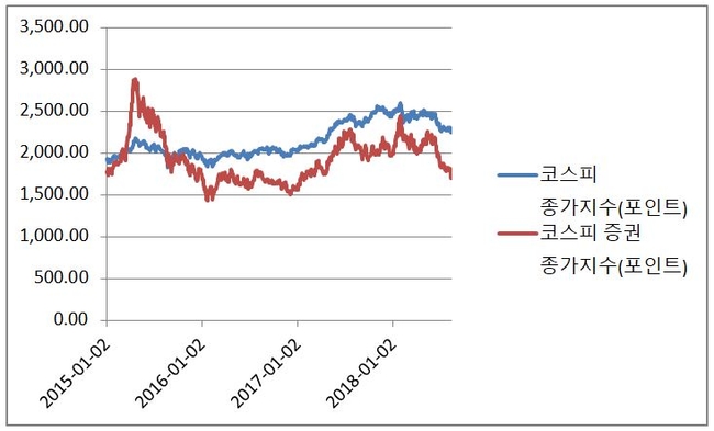 하이투자증권 강승건 연구원은 “이달들어 증권업종은 약세를 기록, 주도주가 없는 가운데 IT 업종의 하락과 미·중 무역 분쟁 지속 등 악재 속에 거래대금의 부진이 이어지고 있기 때문”이라고 분석했다.