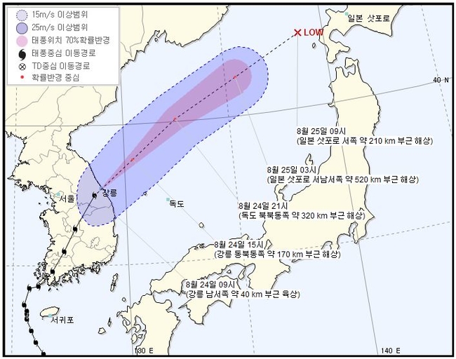 기상청 관계자는 “태풍 규모는 줄어들지 않았으나, 태풍 강도가 빠르게 약화됐다”고 설명했다. 이어 “태풍특보는 해제됐으나 강원도 등 동해안을 중심으로 비가 내릴 수 있으니 시설물 관리와 안전사고에 유의해야 한다”고 강조했다.