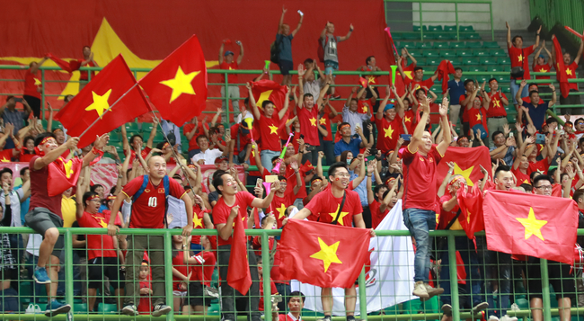 베트남 U-23 남자 축구 대표팀이 27일 오후(현지시간)인도네시아 자와바랏주 브카시의 패트리엇 스타디움에서 열린 2018 자카르타-팔렘방 아시안게임(AG) 남자 축구 8강 시리아와 경기에서 연장 접전 끝에 1-0으로 승리했다. 4강에 오른 베트남 팬들이 기뻐하고 있다.