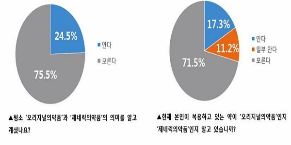 소비자 4명 중 3명은 복용하는 의약품이 오리지널인지 제네릭인지 잘 모르는 것으로 나타났다.