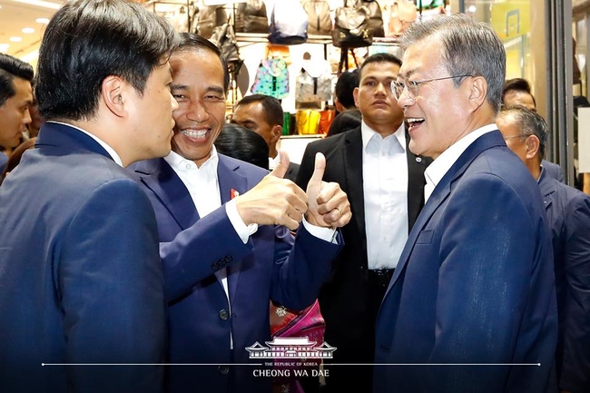 두 정상이 함께 쇼핑에 나선 건 이번이 두 번째다. 지난해 11월 문재인 대통령의 인도네시아 국빈 방문 시 두 정상은 인도네시아 비티엠 보고르 몰을 함께 방문했었다.