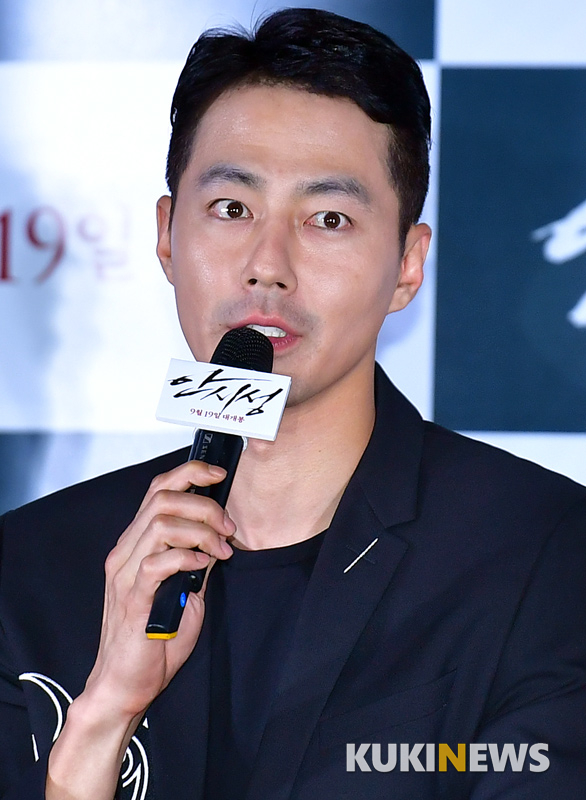 배우 조인성이 12일 오후 서울 CGV용산에서 열린 영화 '안시성' (감독 김광식) 언론시사회에서 취재진의 질문에 답하고 있다.
