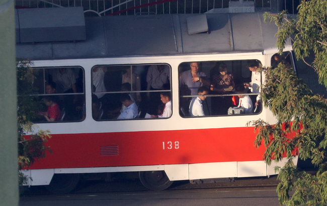 2018 남북정상회담 이틀째인 19일 아침 평양시민들이 출근길을 서두르고 있다. 특별수행원 숙소인 평양 고려호텔에서 바라다 본 모습이다.