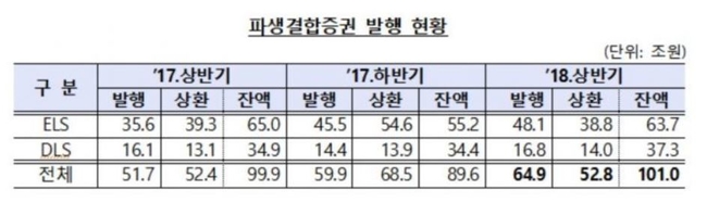 상반기 주가연계증권(ELS) 발행액은 48조1000억원으로 지난해 상반기보다 35.1% 증가한 것으로 나타났다. 국내외 증시 변동성 확대로 ELS 투자 수요가 늘어났기 때문이라는 것이 금융감독원의 분석이다.