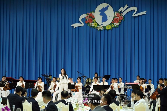 청와대가 2일 공식 페이스북을 통해 평양에서 열린 남북정상회담 첫날 만찬 공연 장면을 공개했다. '첫눈처럼 너에게 가겠다'를 불러 분위기를 띄운 에일리.