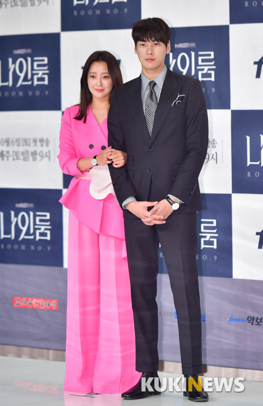 배우 김희선과 김영광이 2일 서울 영등포 타임스퀘어에서 열린 tvN 토일드라마 '나인룸' 제작발표회에 참석해 포즈를 취하고 있다.