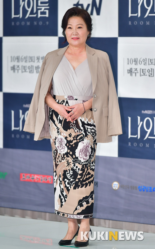 배우 김해숙이 2일 서울 영등포 타임스퀘어에서 열린 tvN 토일드라마 '나인룸' 제작발표회에 참석해 포즈를 취하고 있다.
