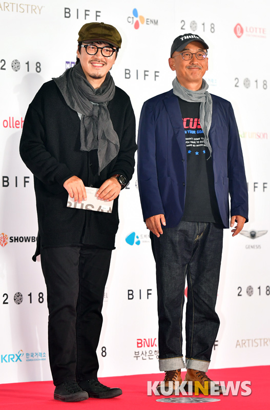 감독 봉만대와 이준익이 4일 오후 해운대구 영화의 전당에서 열린 '제23회 부산국제영화제(BIFF)' 개막식에서 레드카펫을 걷고 있다.
