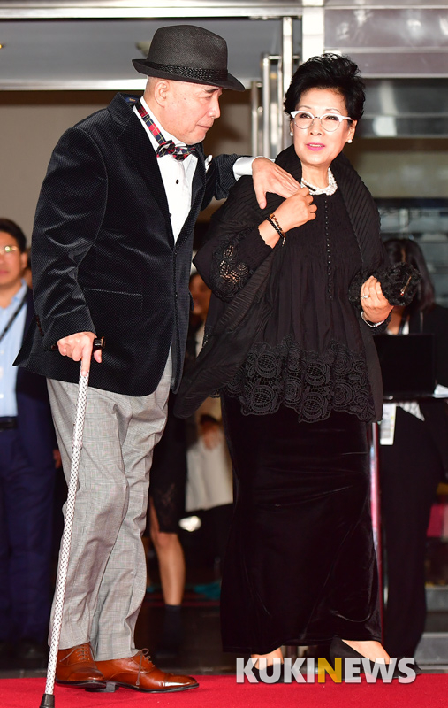 배우 김희라 부부가 4일 오후 해운대구 영화의 전당에서 열린 '제23회 부산국제영화제(BIFF)' 개막식에서 레드카펫을 걷고 있다.