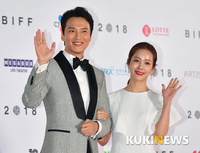 배우 김남길과 한지민이 4일 오후 해운대구 영화의 전당에서 열린 '제23회 부산국제영화제(BIFF)' 개막식에서 레드카펫을 걷고 있다.