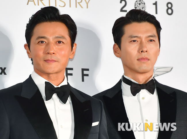 배우 장동건과 현빈이 4일 오후 해운대구 영화의 전당에서 열린 '제23회 부산국제영화제(BIFF)' 개막식에서 레드카펫을 걷고 있다.