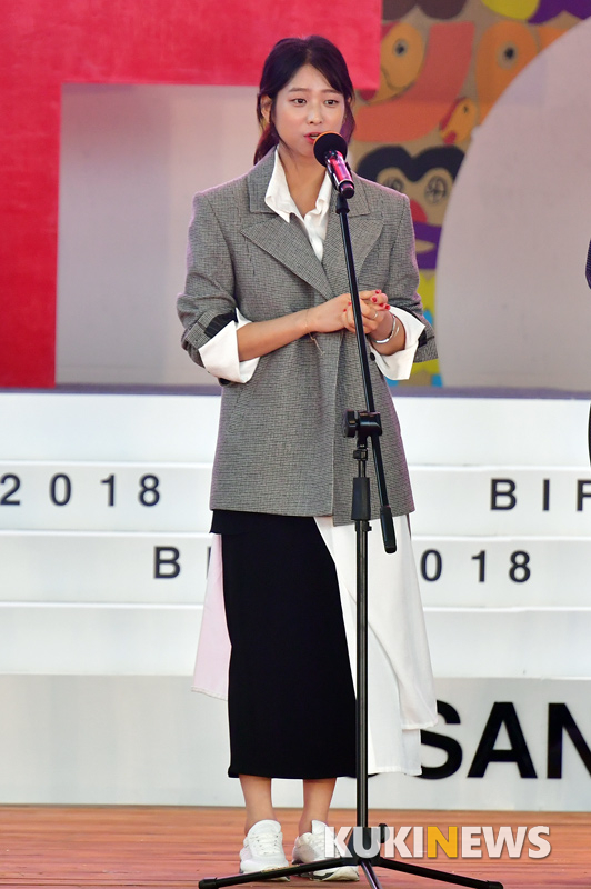 배우 배누리가 5일 오후 부산 해운대구 영화의 전당 두레라움 광장에서 열린 영화 ‘막다른 골목의 추억’ 야외무대인사에서 영화팬들과 즐거운 시간을 보내고 있다.