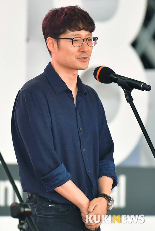 감독 박훈정이 5일 오후 부산 해운대구 영화의 전당 두레라움 광장에서 열린 영화 ‘마녀’ 야외무대인사에서 영화팬들과 즐거운 시간을 보내고 있다.