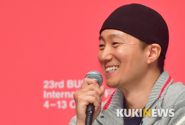 배우 박해일이 5일 오후 부산광역시 해운대구 신세계백화점 문화홀에서 열린 영화 '군산: 거위를 노래하다' 기자회견에서 취재진의 질문에 답하고 있다.