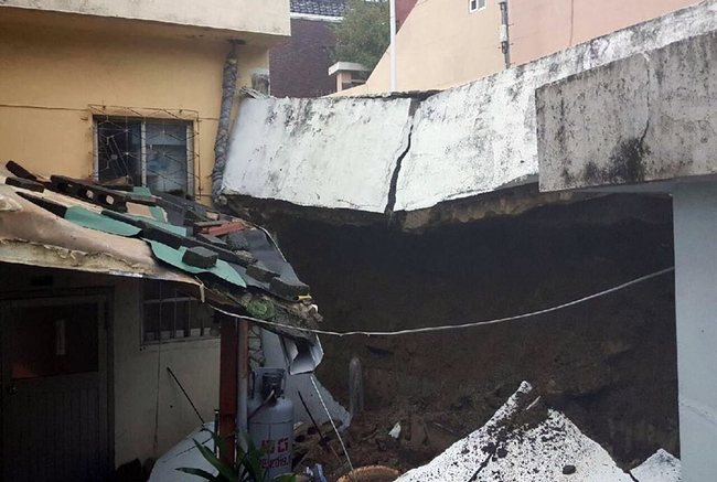 6일 오전 6시 25분께 부산 부산진구 양정동 다세대 주책 담벼락(높이 1m, 길이 7m)이 태풍 콩레이의 영향으로 무너졌다.