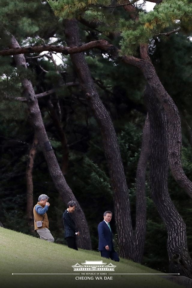 문 대통령은 효종 영릉을 참배한 후 '왕의 숲길'을 걸어 세종 영릉을 찾았다.
