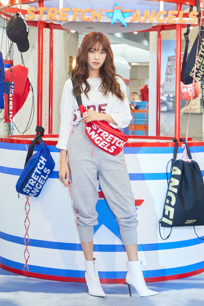 배우 보라가 11일 서울 마포구 스트레치 엔젤스 홍대 플래그쉽 스토어에서 열린 '플레이 스트레치 라이프' 캠페인 행사에 참석해 포즈를 취하고 있다.