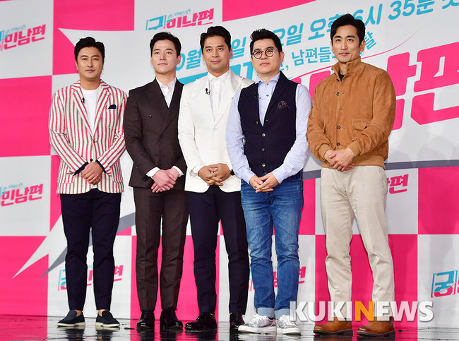 안정환과 조태관, 권오중, 김용만, 차인표가 19일 오후 서울 성암로 상암 MBC 사옥에서 열린 MBC 새 예능 ‘궁민남편’ 제작발표회에서 포즈를 취하고 있다.