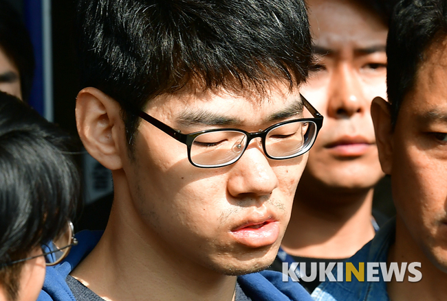 서비스가 불친절하다는 이유로 PC방 아르바이트생을 흉기로 찔러 숨지게 한 혐의를 받는 김성수 씨가 22일 오전 서울 양천경찰서에서 공주 치료감호소로 가기 위해 경찰서를 나서고 있다. 김 씨는 이곳에서 길게는 한 달간 정신감정을 받는다.