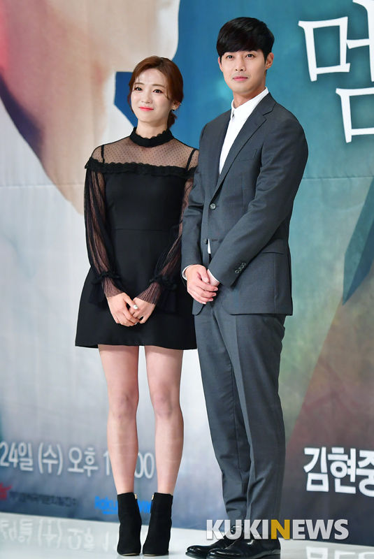 배우 안지현과 김현중이 23일 오후 서울 영중로 타임스퀘어 아모리스홀에서 열린 KBS W 새 수목드라마 ‘시간이 멈추는 그때’ 제작발표회에서 포즈를 취하고 있다.