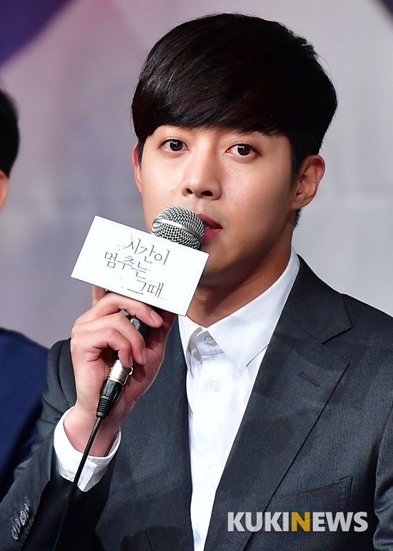 배우 김현중이 23일 오후 서울 영중로 타임스퀘어 아모리스홀에서 열린 KBS W 새 수목드라마 ‘시간이 멈추는 그때’ 제작발표회에서 취재진의 질문에 답하고 있다.