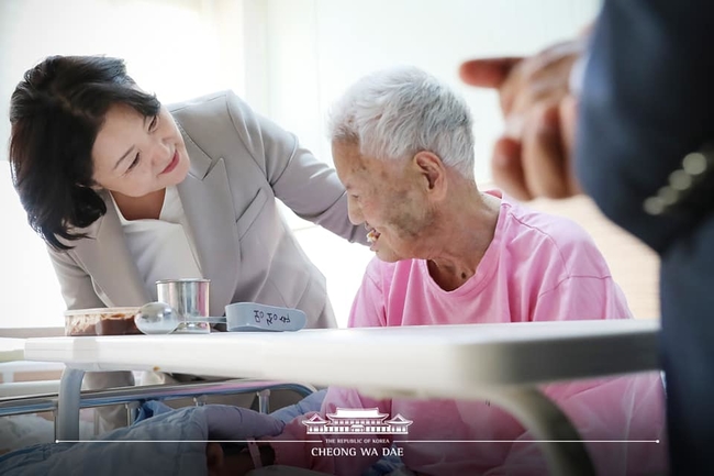 김정숙 여사가 23일 국립소록도병원을 방문해 병동을 둘러보고 환우들과 병원 관계자들을 격려했다.