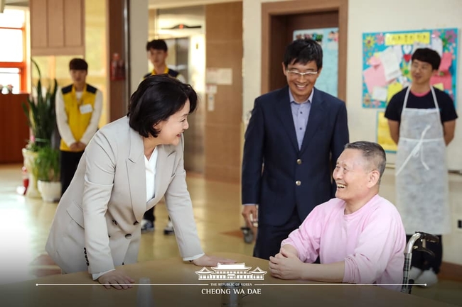 김정숙 여사가 23일 국립소록도병원을 방문해 병동을 둘러보고 환우들과 병원 관계자들을 격려했다.