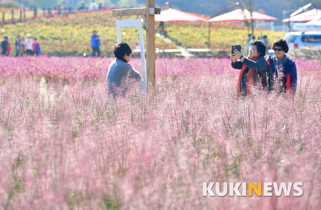 25일 경기도 양주 나리공원 찾은 시민과 관광객들이 가을꽃을 만끽하고 있다.