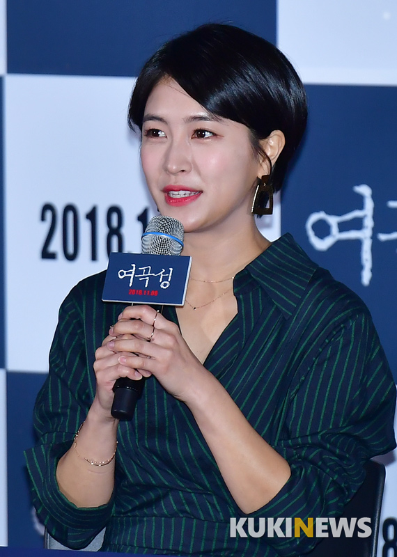 배우 박민지가 1일 서울 CGV 용산에서 열린 영화 '여곡성' 언론시사회에서 취재진의 질문에 답하고 있다.